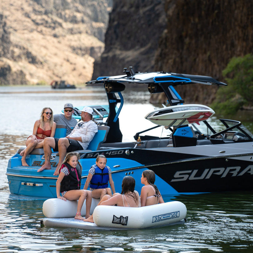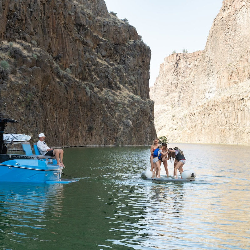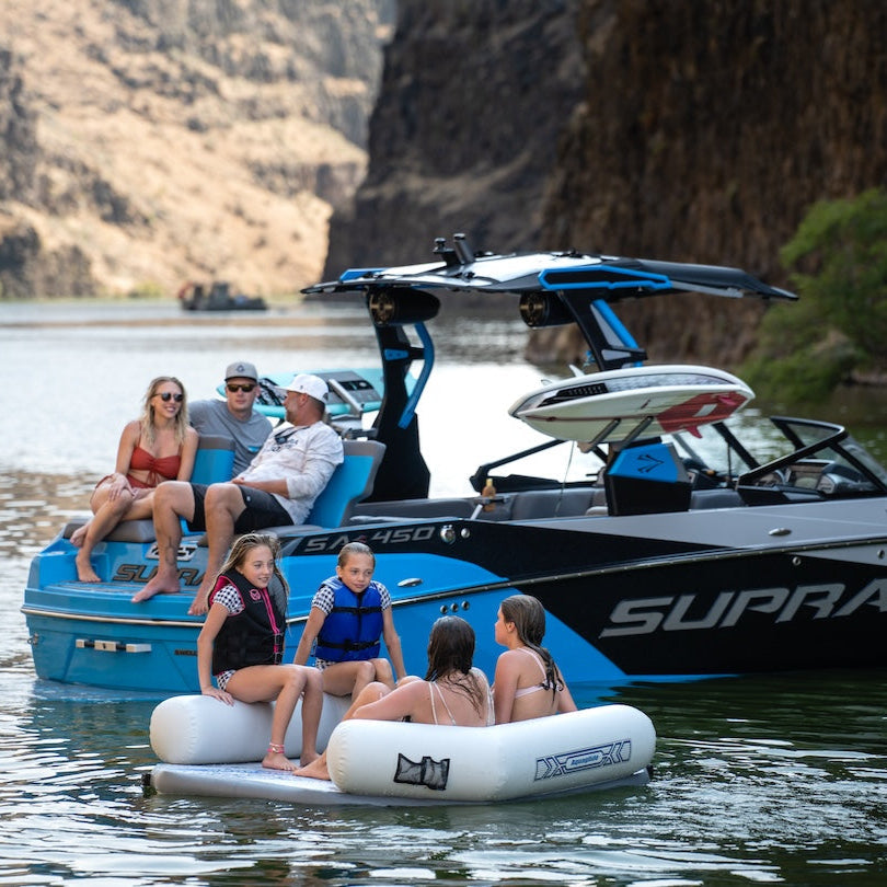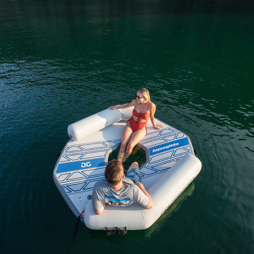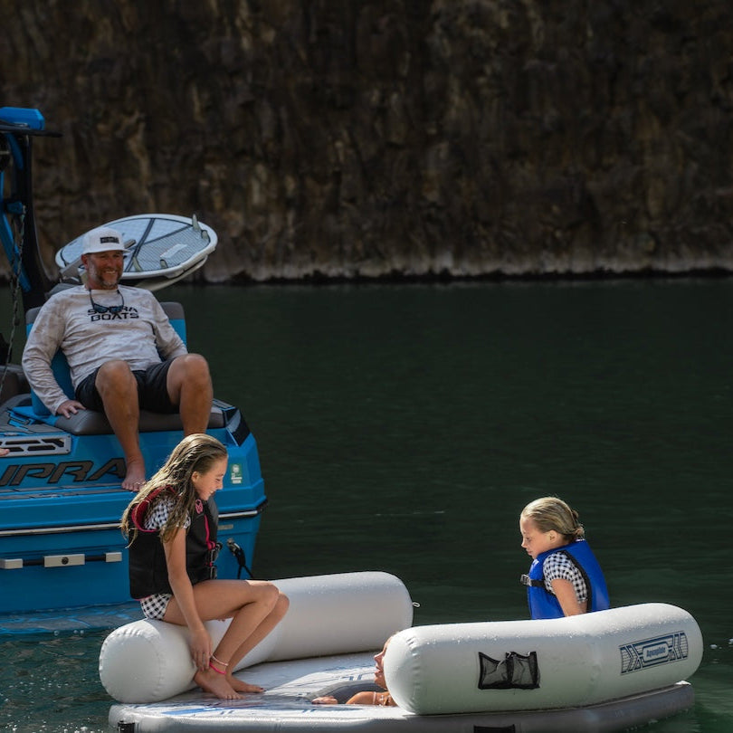 Featuring two spacious boarding zones, supportive backrests, and a cooling footwell, it’s perfect for lounging in coves or tying off after a day on the water. Padded handles and anchor points on both top and bottom make deployment simple and enjoyment effortless. Connects to Aquaglide Lakefront slides or features on one side via the 5-ring Interlock system.