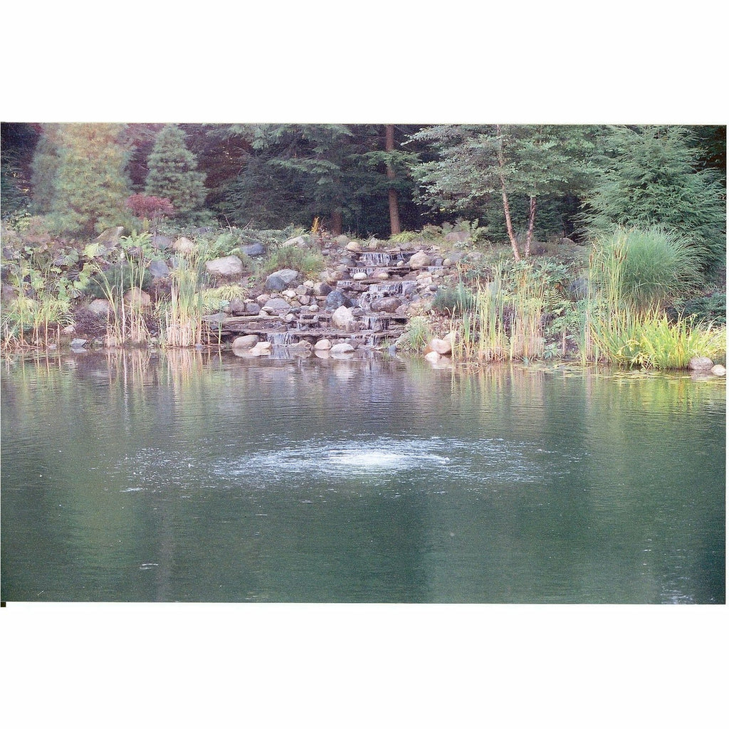 Adding a sub-surface aeration system is a great way to increase water quality and oxygen levels while maintaining the natural appearance of your pond. This style of aerator has one diffuser module that sits at the bottom of the pond, connected by weighted tubing, which is in turn connected to an air compressor on shore. The compressor pumps much-needed air to the bottom of your pond, ensuring adequate oxygen levels during hot summer months. Air is pumped from the compressor through the weighted airline to the diffusers at the pond bottom. When the air reaches the diffuser, several thousand small air bubbles are created. These bubbles rise to the surface and produce an upward current. Water at the pond bottom is lifted to the surface where oxygen is replenished by the atmosphere.