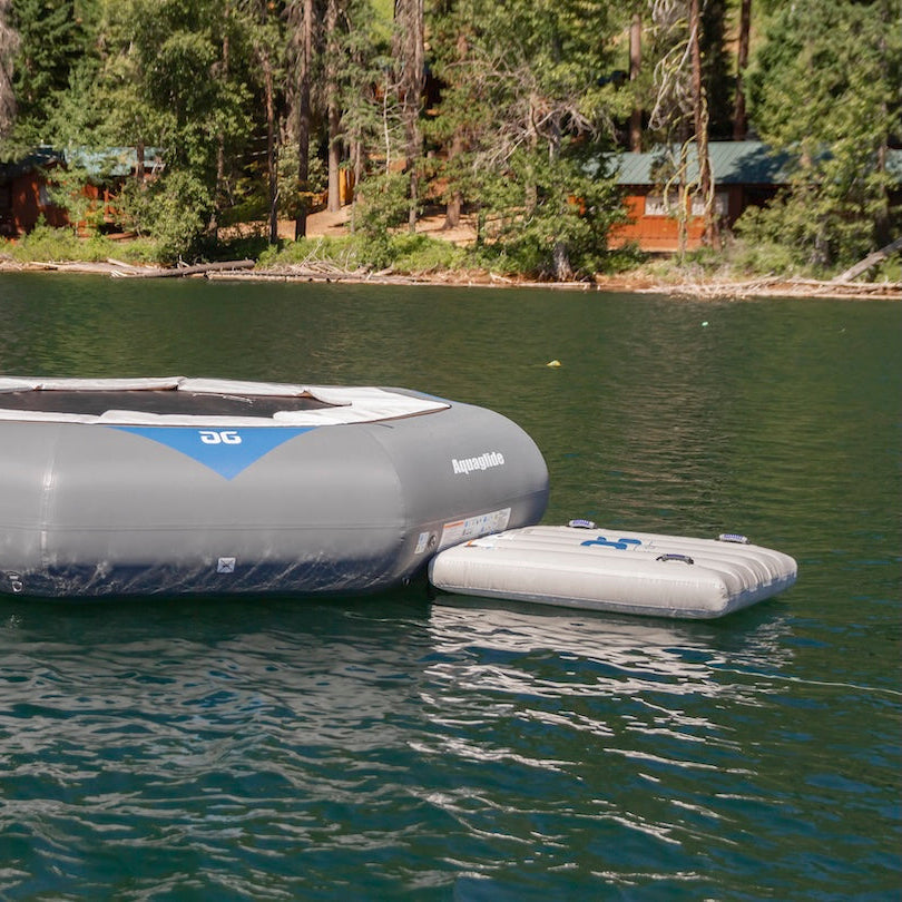 The C-Deck makes boarding your Aquaglide bouncer or trampoline simple, stable, and stress-free. With a flat surface and integrated grab handles, it’s a major upgrade from traditional rope ladders—especially for younger users or grandparents who want to join the fun with ease.