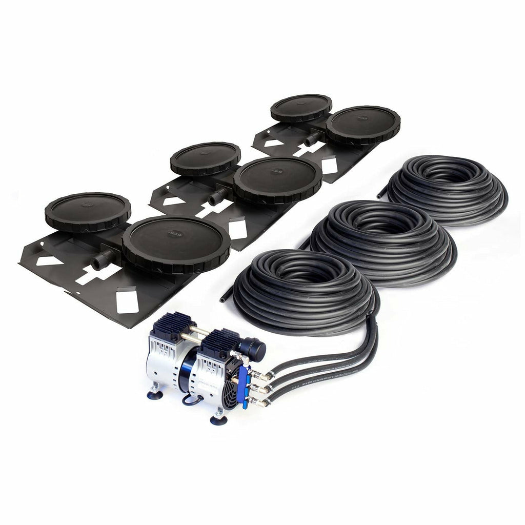 Adding a sub-surface aeration system is a great way to boost water quality and oxygen levels while maintaining the natural appearance of your pond. This style of aerator has three diffuser modules that sit at the bottom of the pond, connected by weighted tubing which is in turn connected to an air compressor onshore. The compressor pumps much-needed air to the bottom of your pond, ensuring adequate oxygen levels during hot summer months.