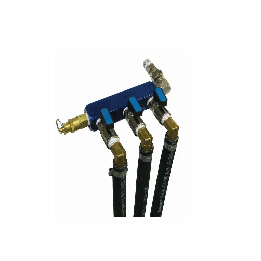 Valved air outlet assembly with individual controls for each hose and pressure relief valve