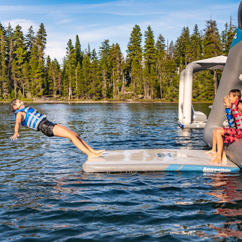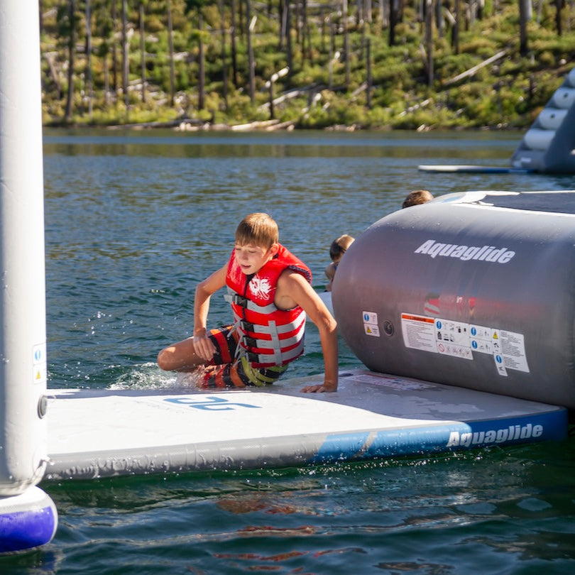 Use it as a walkway, slideway, or boarding platform—or simply as extra space for lounging and play. With connection points at both ends, the Half Deck 7.5 integrates seamlessly with any Aquaglide residential feature, making it an essential piece for expanding your floating setup.