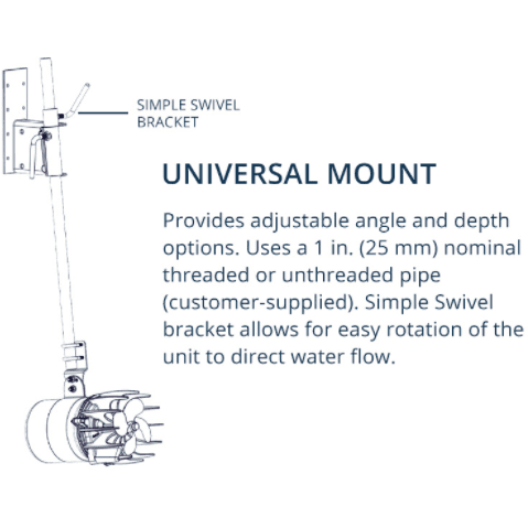 Universal Mount Kit packages include Simple Swivel bracket allowing for easy rotation of the unit to direct flow of water.