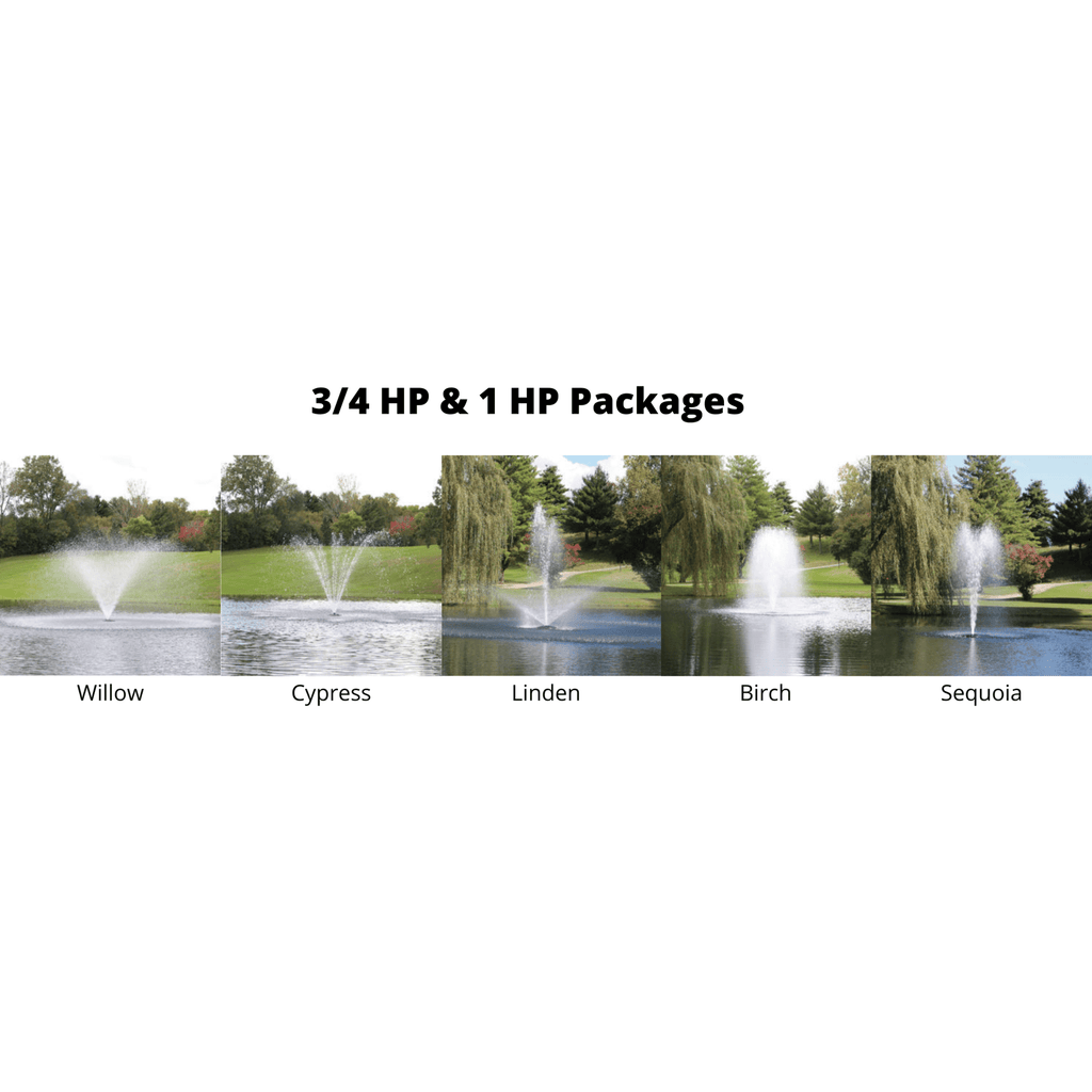 Package comes with 5 interchangeable spray patterns, motor unit, float, bottom screen, control panel w/GFCI protection, mooring lines and power cord.