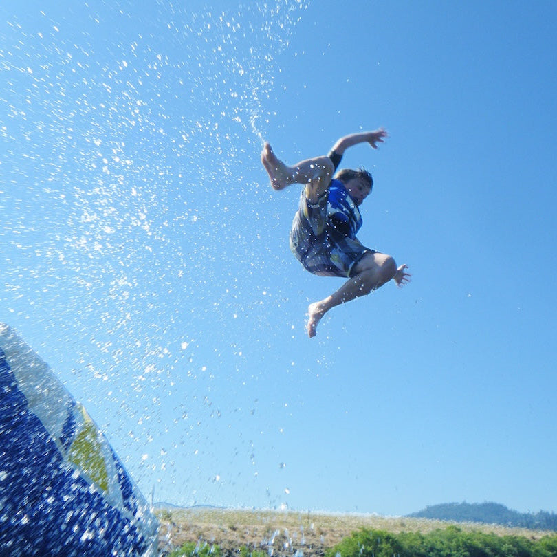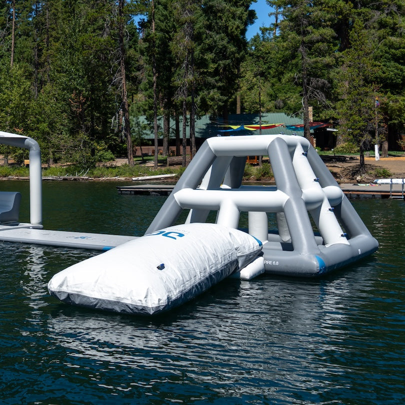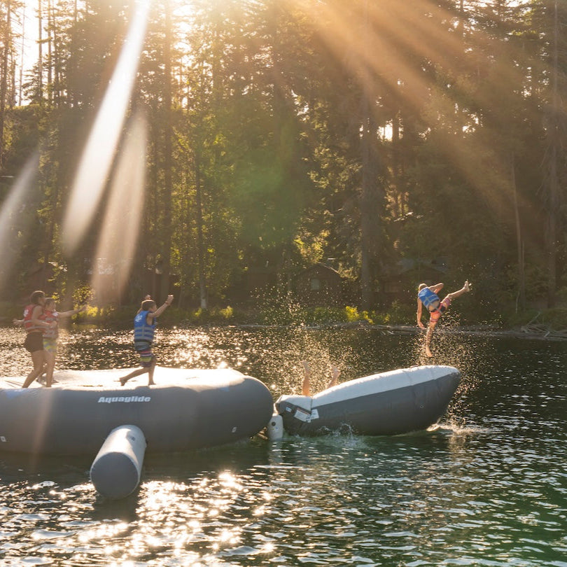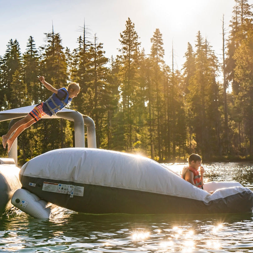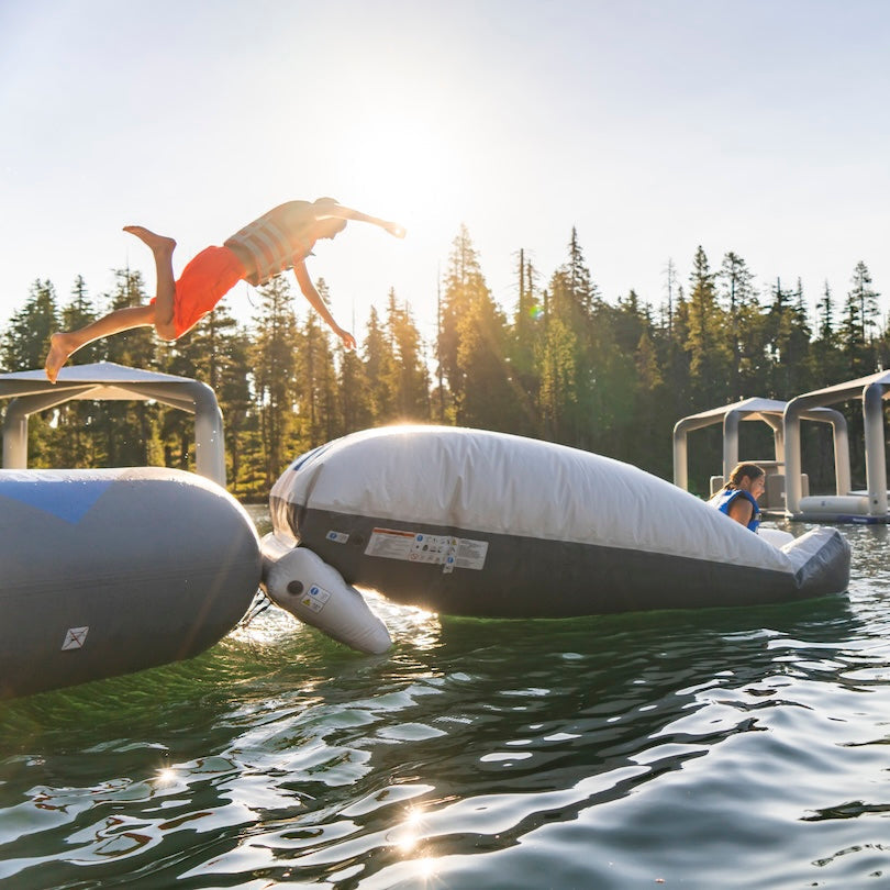 The Launch Bag is the ultimate source of lakefront excitement. Using gravity and air pressure, it propels one user into the air while another jumps onto the platform—creating spectacular airtime and memorable splashdowns.