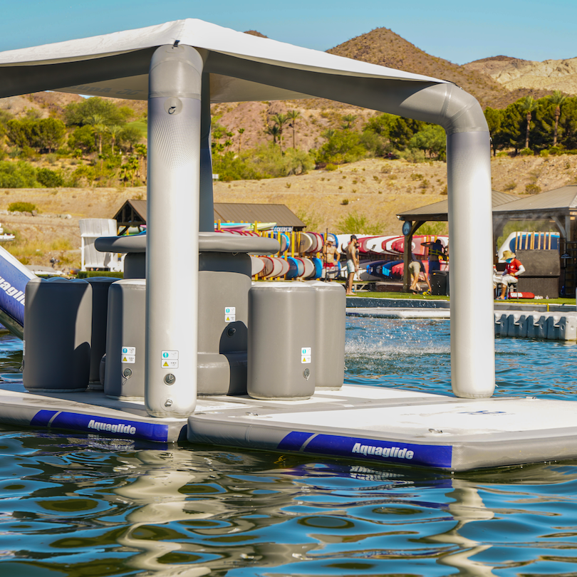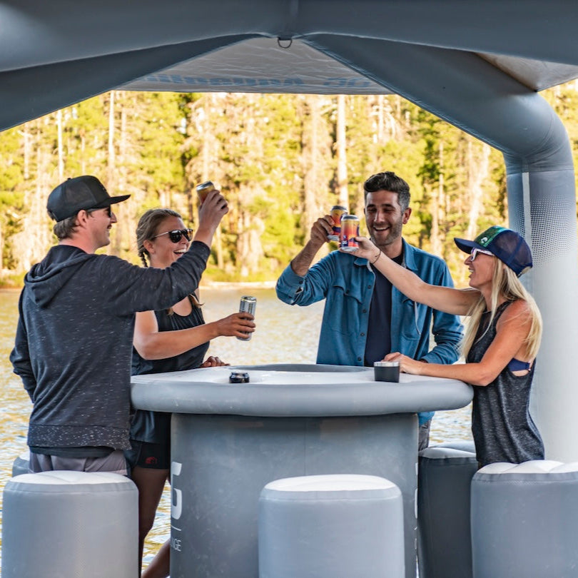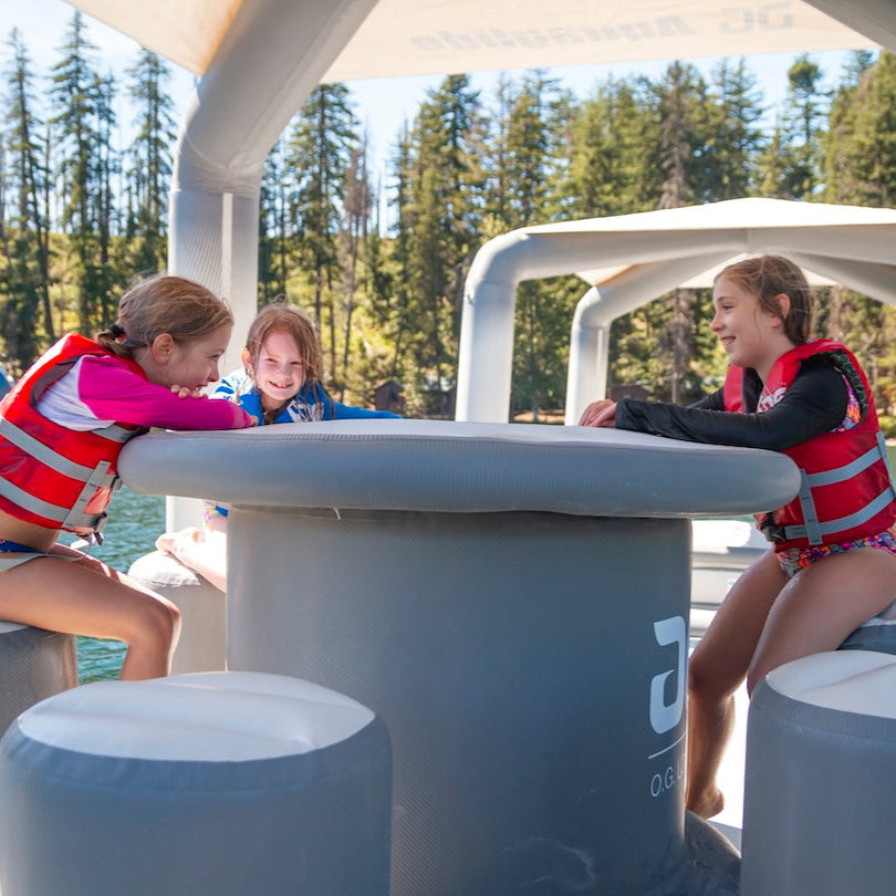 A standout in Aquaglide’s Lounge Series, the OG Lounge brings comfort, function, and style together in one perfectly designed floating retreat. With barstool-style seating, a raised central table, built-in cupholders, and a shaded canopy, it’s an inviting space for lakeside meals, card games, or simply enjoying the view.