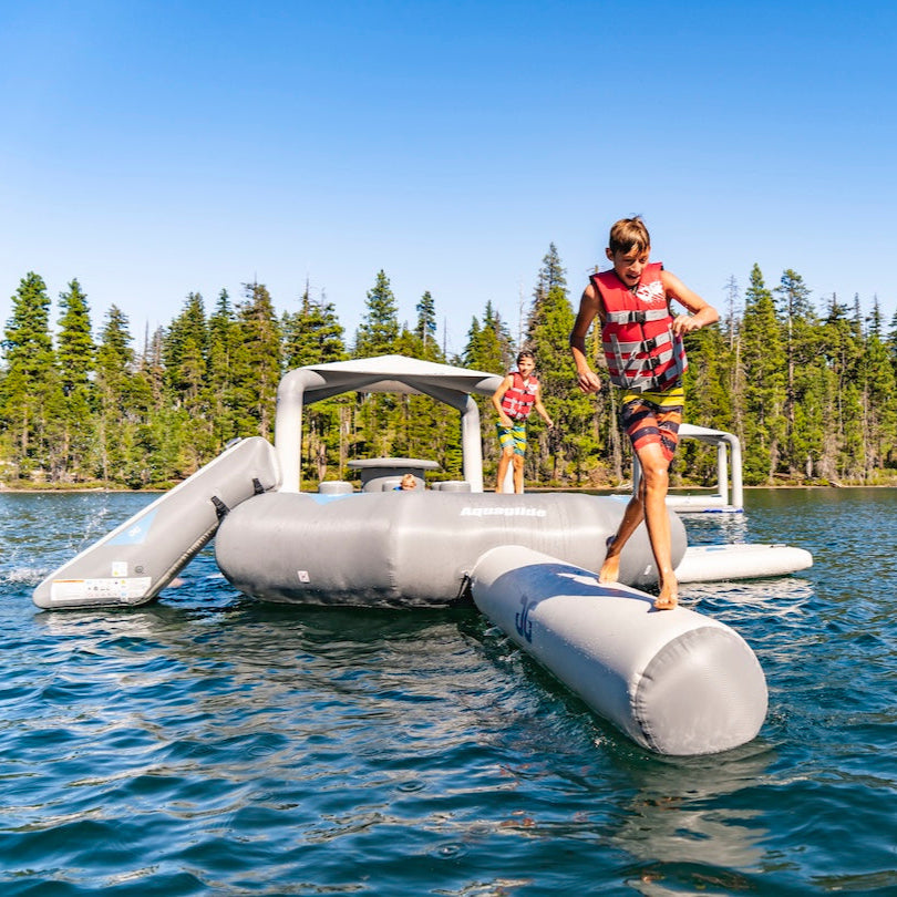 This comprehensive package includes a C-Deck boarding platform, Slide, and 50/50 Log, turning the Recoil into a complete floating aquapark. Made with fully welded, reinforced Duratex™ material and equipped with integrated D-rings, it’s built to grow alongside your waterfront setup and your family’s thirst for fun.