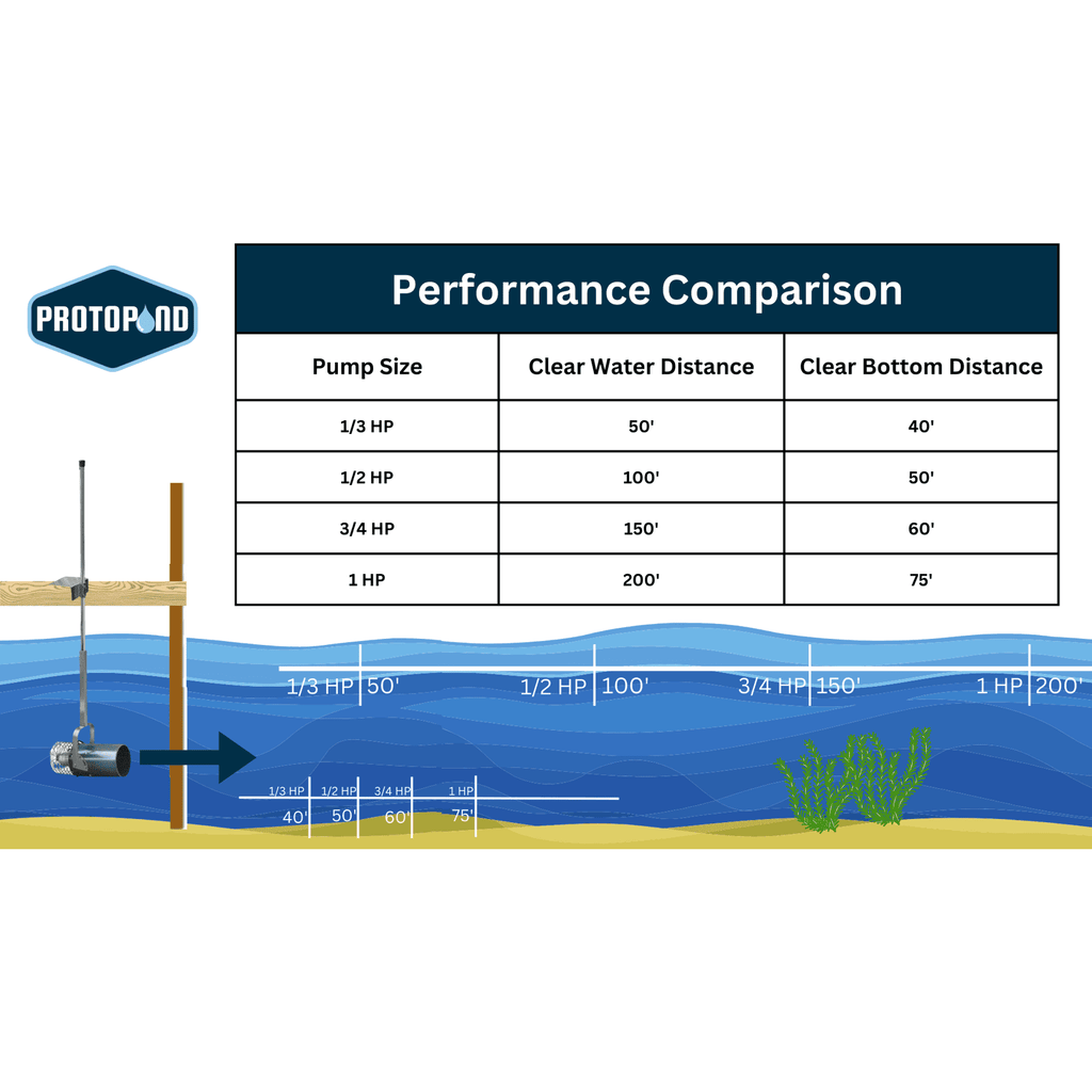 The Aquasweep can be pointed in any direction around your dock to focus your muck or sediment movement precisely where you’d like it. It also includes vertical adjustment, making it the ideal solution for eliminating decaying bottom muck, targeting weedy areas, or removing floating surface algae. We recommend adding the oscillator attachment so you don’t have to manually rotate the Aquasweep. The fully programmable oscillator automatically rotates the Aquasweep in 20° increments every 20 minutes for up to 359° of coverage!
