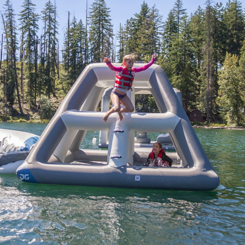 Crafted with fully welded Duratex™ construction and three-layer seams, the Spire is built for years of active use. Use it as a standalone centerpiece or connect it on all four sides to other Aquaglide accessories for a truly integrated floating playground.